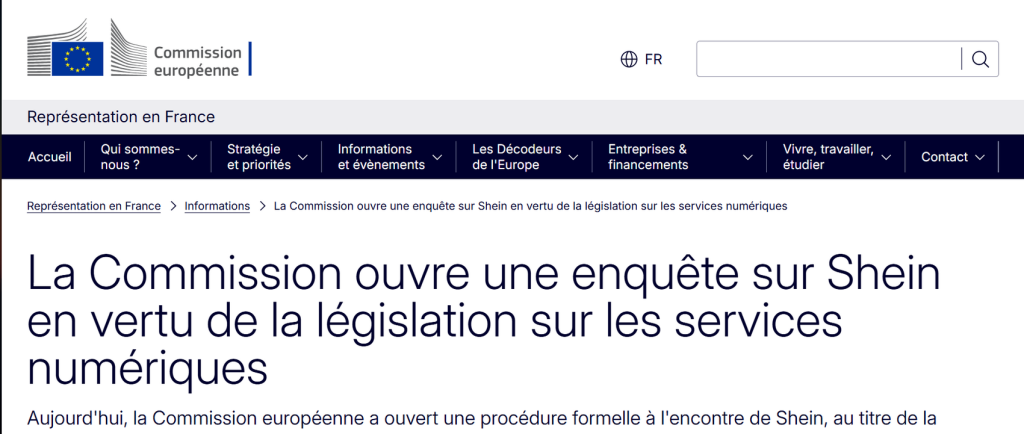 If Shein is found to have violated the Digital Services Act (DSA), it would face a fine of up to 6% of its annual worldwide turnover.