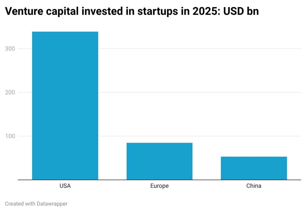 Venture capitalists have seen which way the wind is blowing and are ploughing in funds. According to the Economist, in the period 2015-2025, venture capital investment in EU tech start-ups has increased fourfold, from USD 22 bn to USD 85 billion. This has allowed the EU to nudge China out of second place in terms of new tech investment.